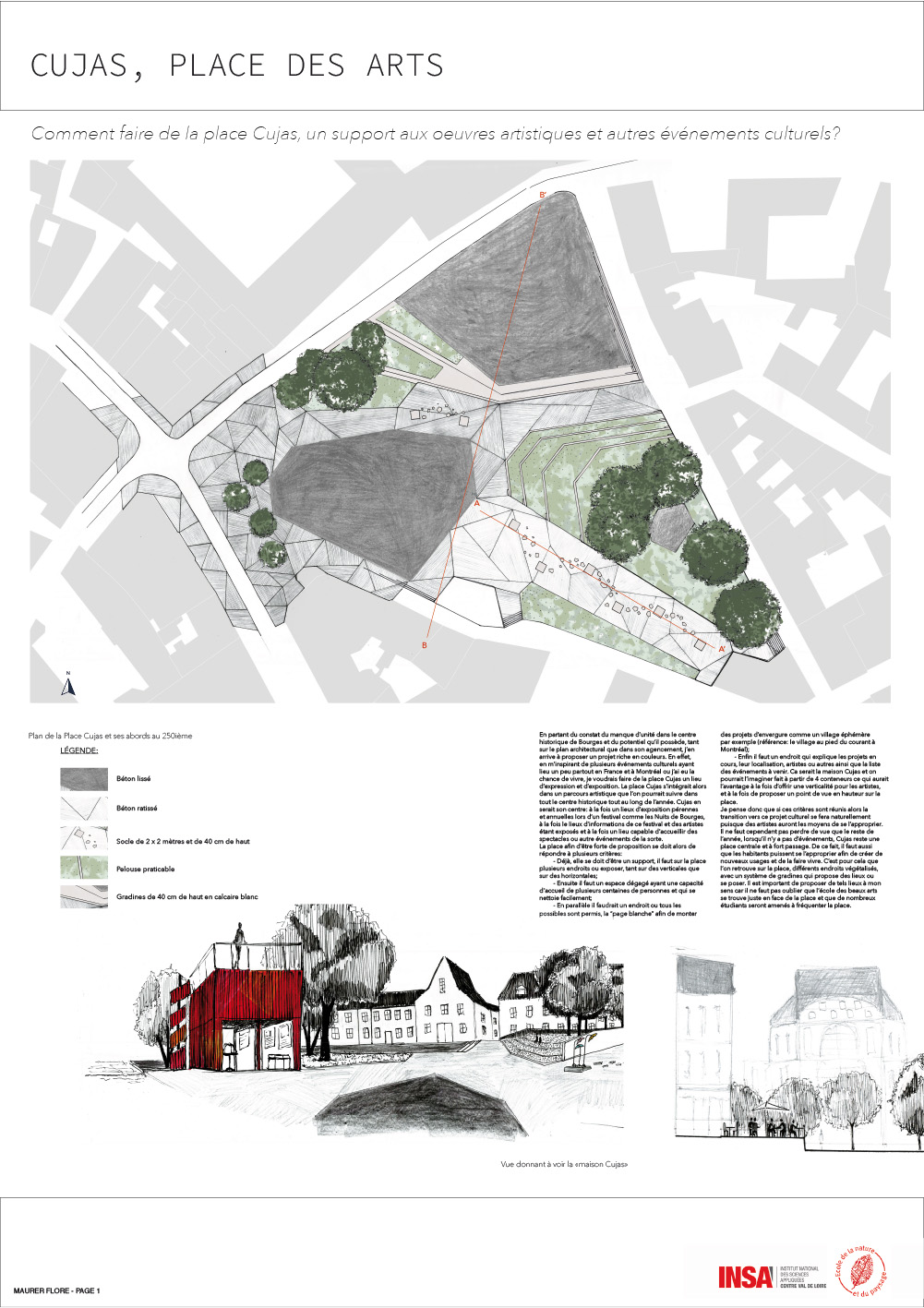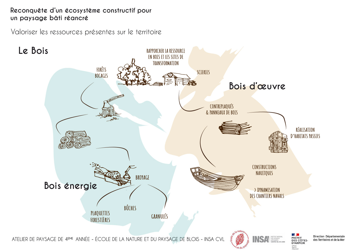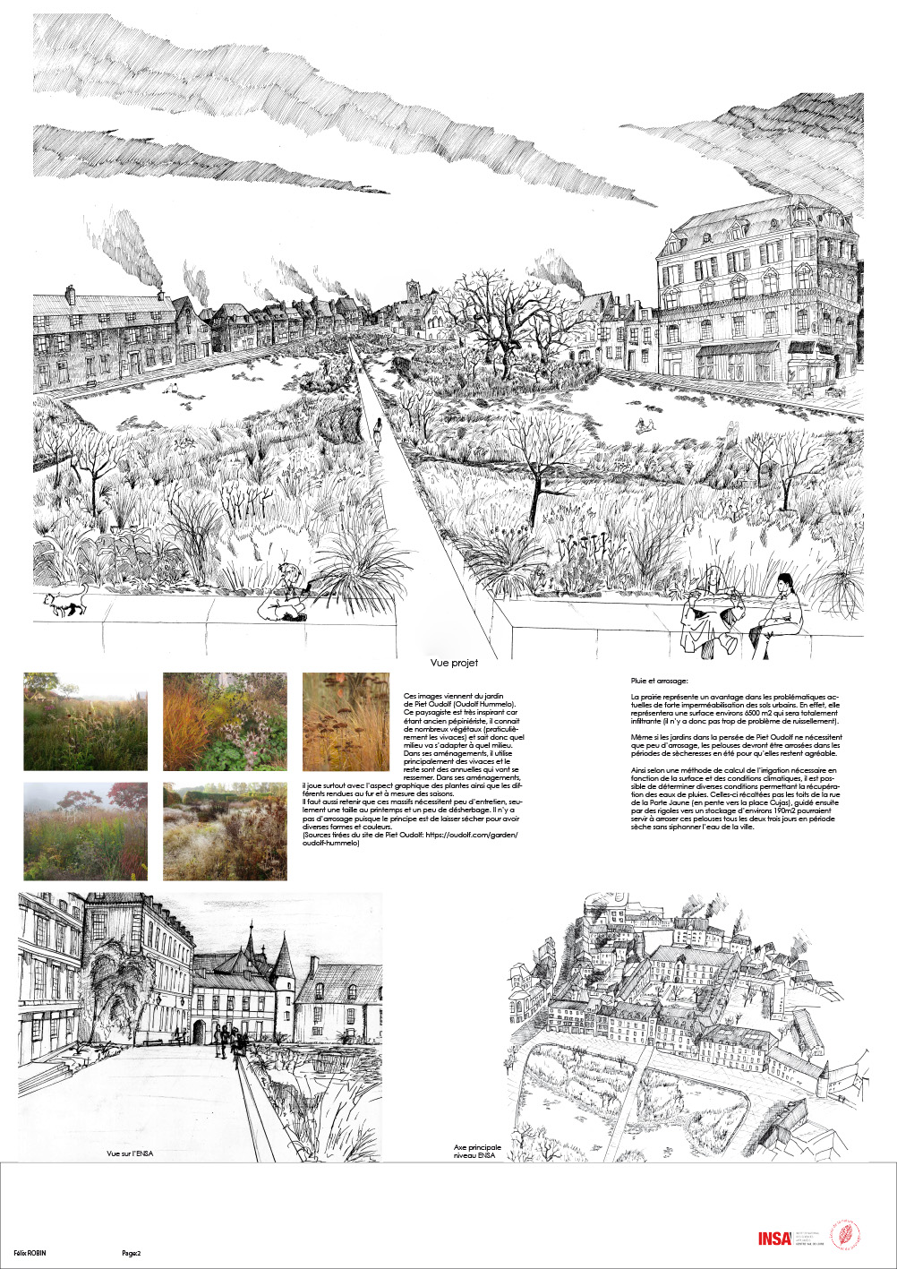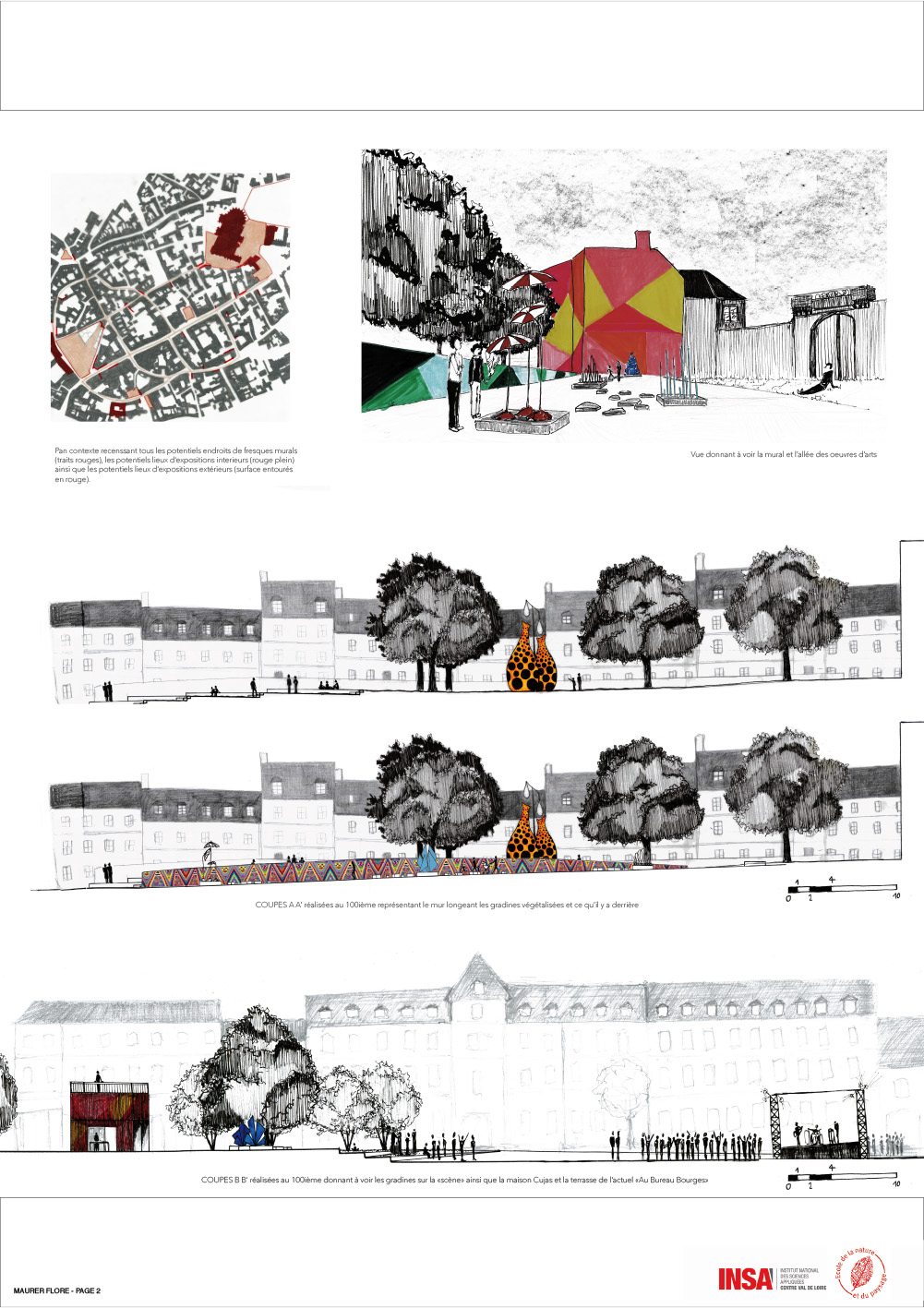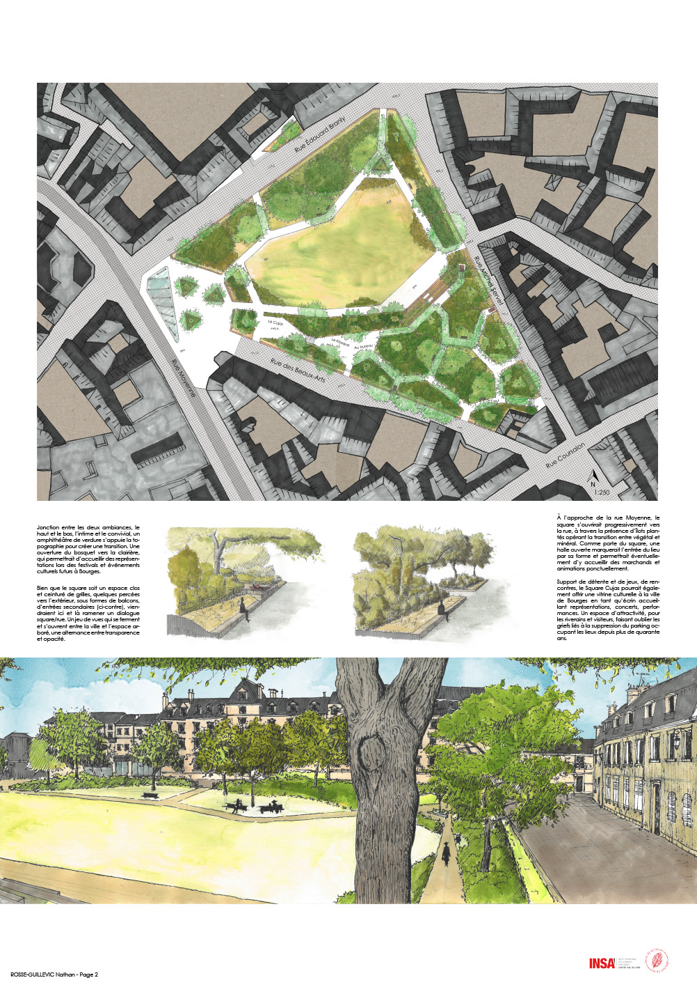 Tous les vendredis, c’est atelier de projet à l’école, pour toutes les promotions. L’atelier de projet en cycle de DEP s’organise autour de conventions que nous établissons avec des partenaires publics ; leurs questionnements deviennent pour les élèves des situations, qui, si elles ne sont pas des commandes réelles, n’en demeurent pas moins des projets réalistes. Partant d’une commande, les élèves et leurs enseignants reformulent les problèmes, définissent une stratégie d’ensemble et répondent collectivement, par autant de propositions de projet de paysage qu’il y a d’élèves, aux questions posées. Récemment, nous avons accompagné la ville de Bourges sur la redéfinition de la place Cujas, la ville de Blois pour un vaste de projet de désimperméabilisation de la ville pour lutter contre les îlots de chaleur urbains, nous avons répondu à la Communauté d’Agglomération de Rochefort pour les soutenir face à la transition énergétique, au Pays des Châteaux (Blois Chambord) pour les aider dans la définition de leur Projet Alimentaire Territorial, à l’Agglomération de Dinan sur leur démarche paysagère agricole, dans le cadre d’enjeux forts d’érosion.