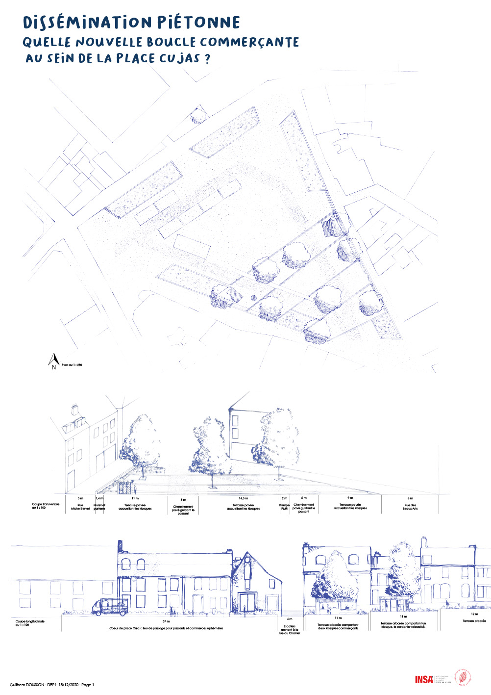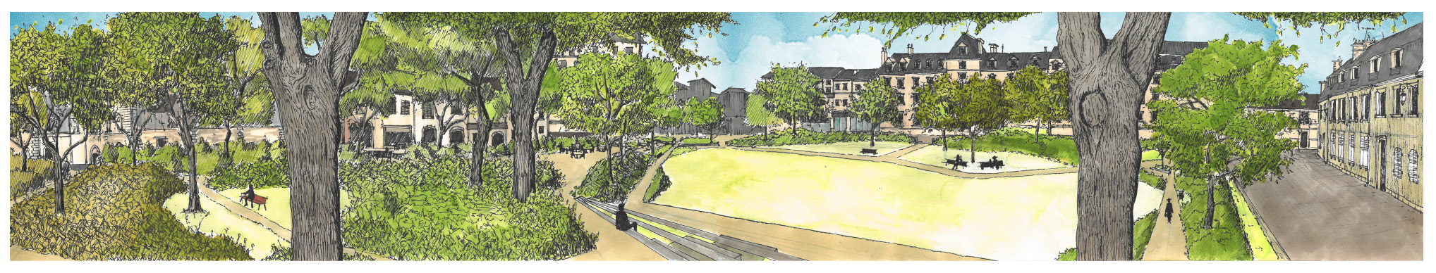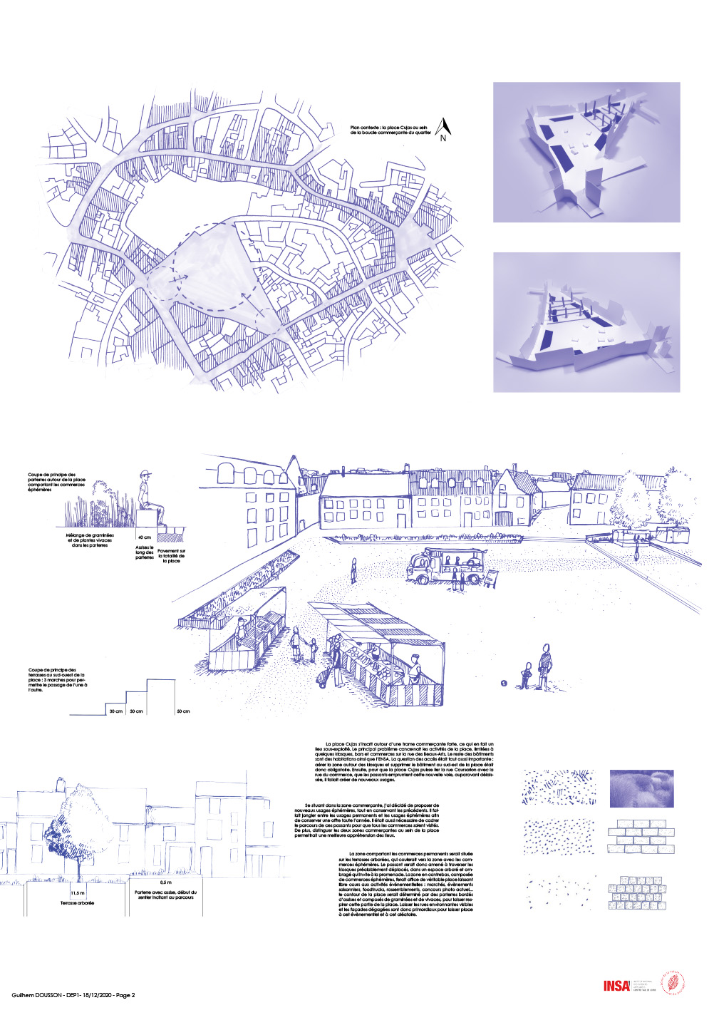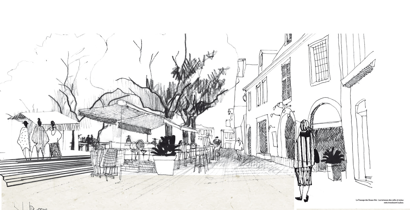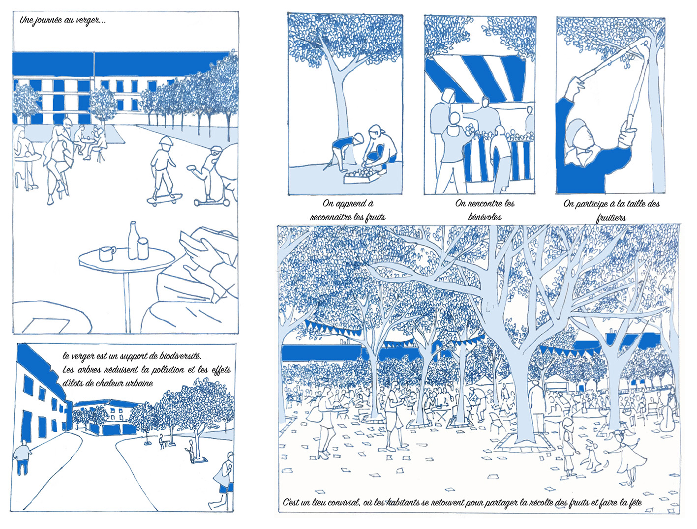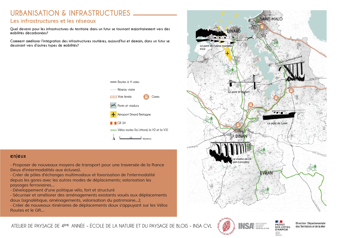 Tous les vendredis, c’est atelier de projet à l’école, pour toutes les promotions. L’atelier de projet en cycle de DEP s’organise autour de conventions que nous établissons avec des partenaires publics ; leurs questionnements deviennent pour les élèves des situations, qui, si elles ne sont pas des commandes réelles, n’en demeurent pas moins des projets réalistes. Partant d’une commande, les élèves et leurs enseignants reformulent les problèmes, définissent une stratégie d’ensemble et répondent collectivement, par autant de propositions de projet de paysage qu’il y a d’élèves, aux questions posées. Récemment, nous avons accompagné la ville de Bourges sur la redéfinition de la place Cujas, la ville de Blois pour un vaste de projet de désimperméabilisation de la ville pour lutter contre les îlots de chaleur urbains, nous avons répondu à la Communauté d’Agglomération de Rochefort pour les soutenir face à la transition énergétique, au Pays des Châteaux (Blois Chambord) pour les aider dans la définition de leur Projet Alimentaire Territorial, à l’Agglomération de Dinan sur leur démarche paysagère agricole, dans le cadre d’enjeux forts d’érosion.